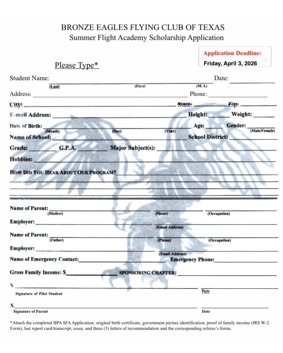 For several years the BPA Summer Flight Academy (SFA) has excited young people about flying and their potential to participate in the aviation field. Furthermore, the SFA has helped them translate this excitement to the academic studies that form the foundation of a productive career. The volunteer instructors are all experienced flight instructors who share their combined experience of 165 years in the aviation field with the SFA students. The SFA is held at Texas Southern University in Houston, TX. Successful participants receive 10 hours of flight time and 40 hours of ground school. They must have at least a B average and be between the ages of 15 and 19. The most successful students can complete their first solo flight.